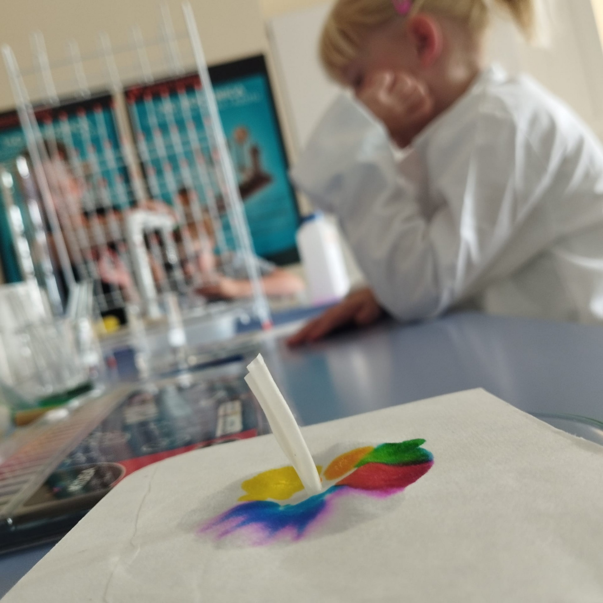 W ich trakcie mieszaliśmy i rozdzielaliśmy barwy, a nawet obserwowaliśmy zmianę koloru płomienia podczas spalania różnych substancji chemicznych.