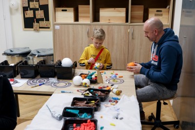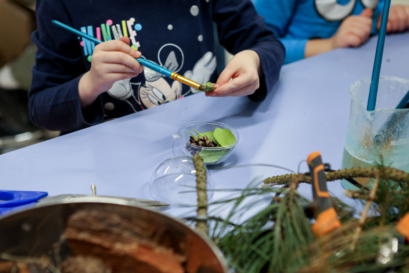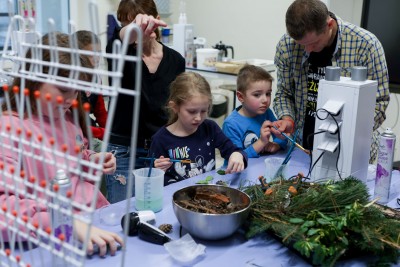W pracowniach chemicznej i Małej Inżynierii każdy mógł stworzyć świąteczne ozdoby, takie jak astronomiczne bombki choinkowe oraz miniaturowego Mikołaja ze świecącym noskiem.