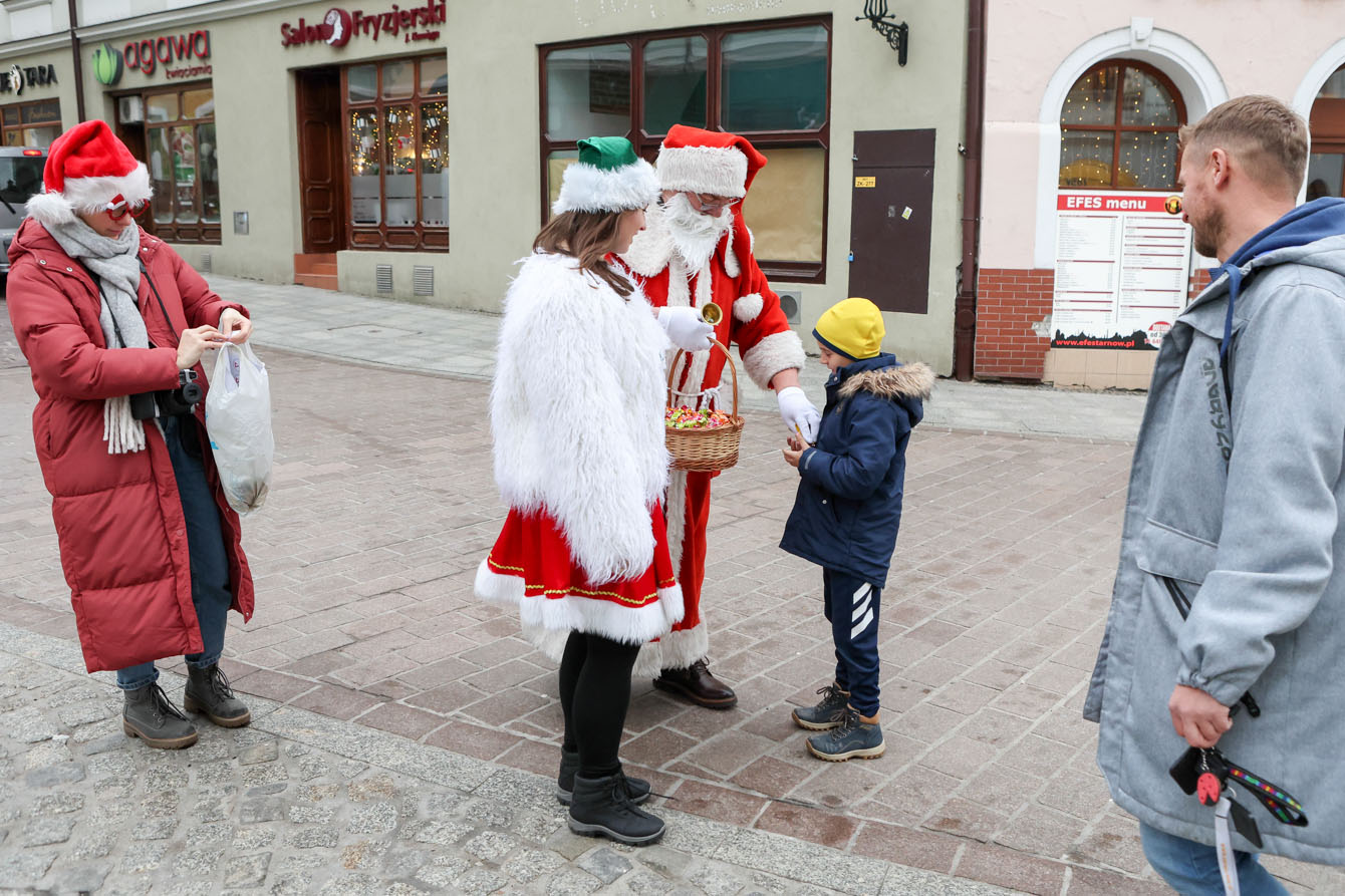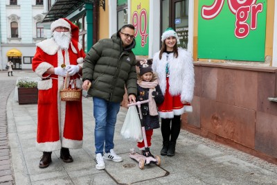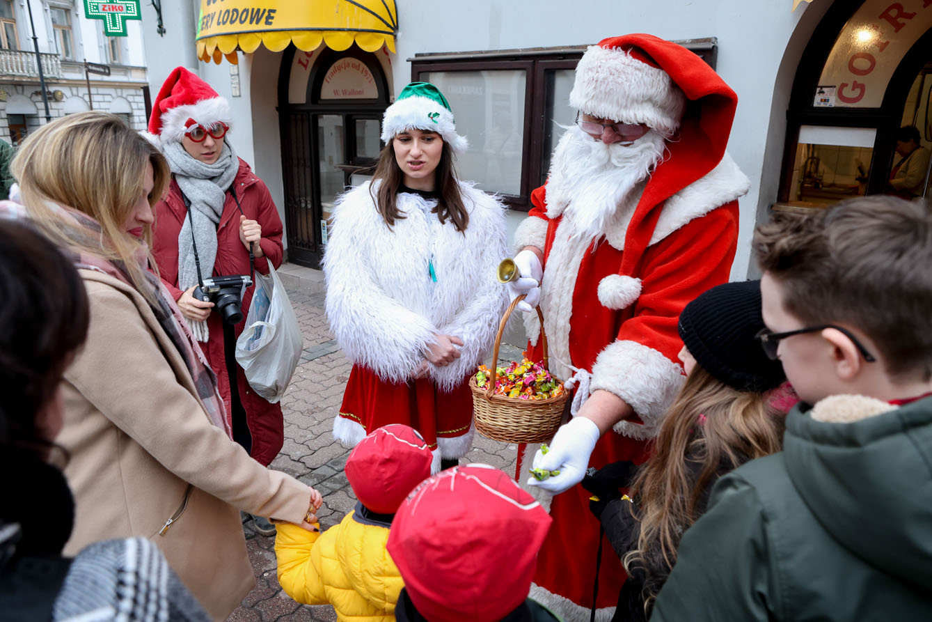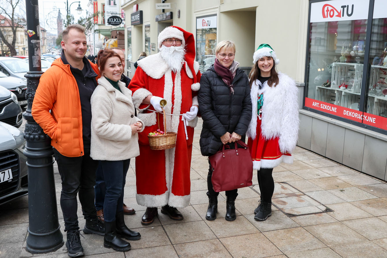 Nasz Mikołaj w towarzystwie swoich asystentek, postanowił również przespacerować się po okolicach Tarnowskiego rynku, by obdarować przechodniów cukierkami i zapozować do zdjęć, które każdy mógł ze sobą zabrać na pamiątkę.