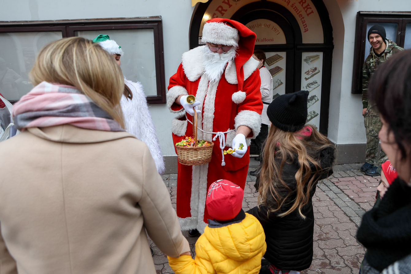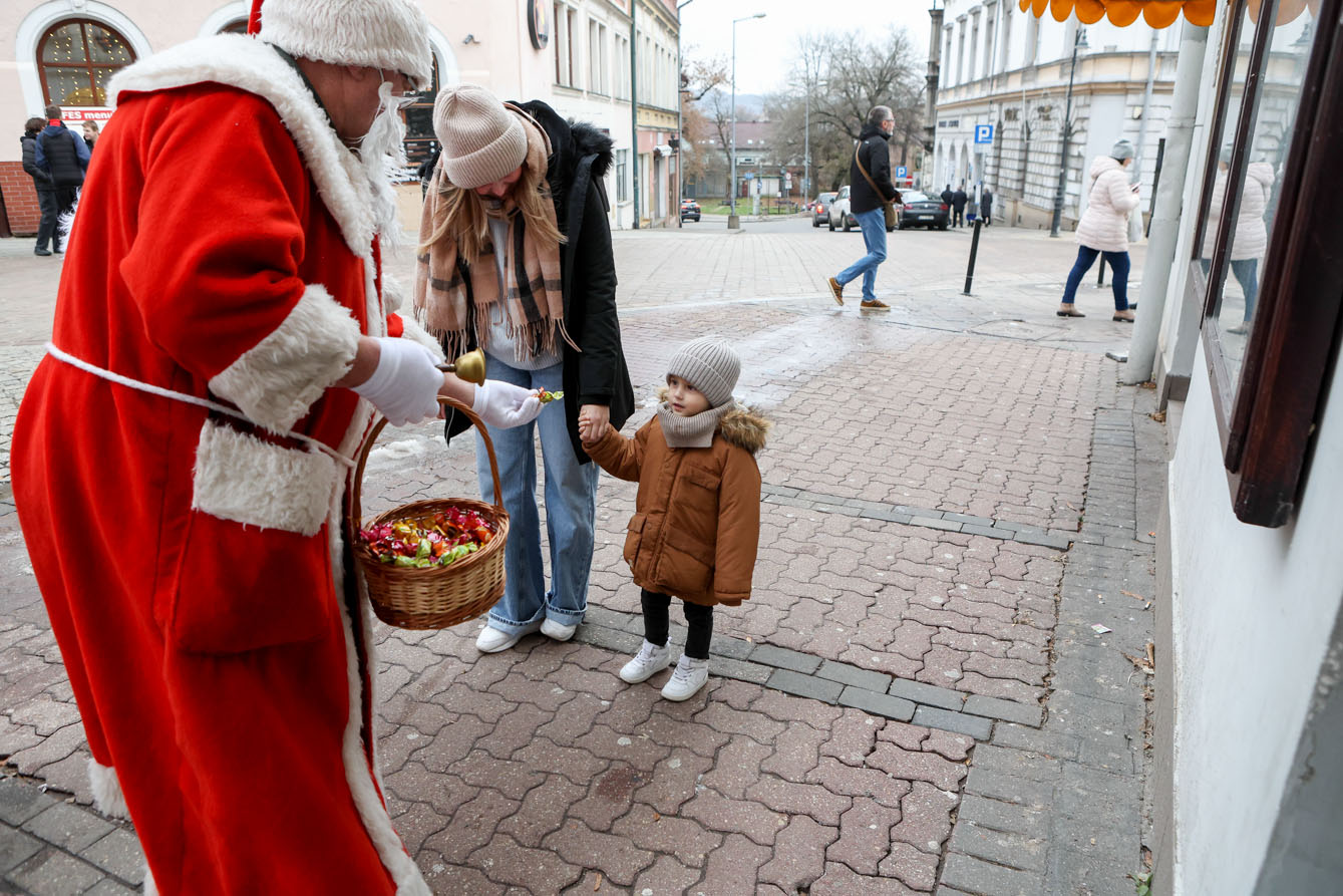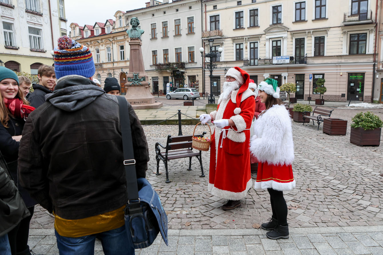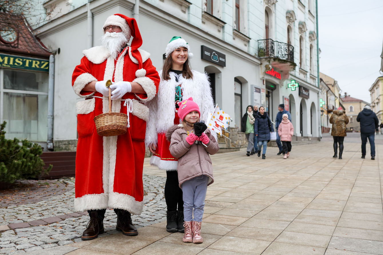 Nasz Mikołaj w towarzystwie swoich asystentek, postanowił również przespacerować się po okolicach Tarnowskiego rynku, by obdarować przechodniów cukierkami i zapozować do zdjęć, które każdy mógł ze sobą zabrać na pamiątkę.