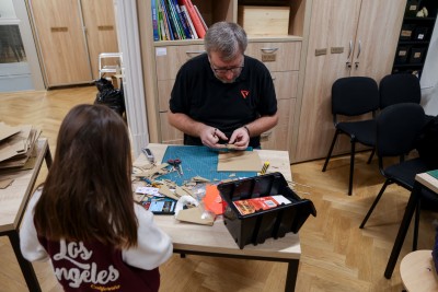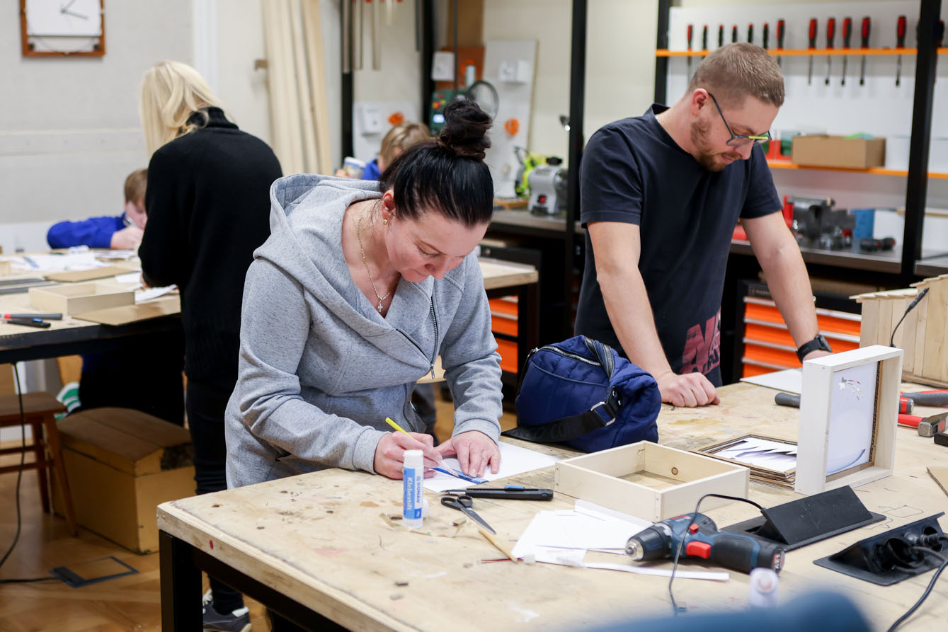 Starsi mogli natomiast w pracowni stolarskiej skonstruować świąteczną lampkę z własnym wzorem.