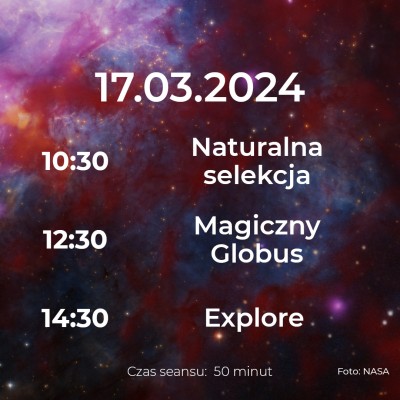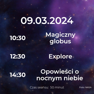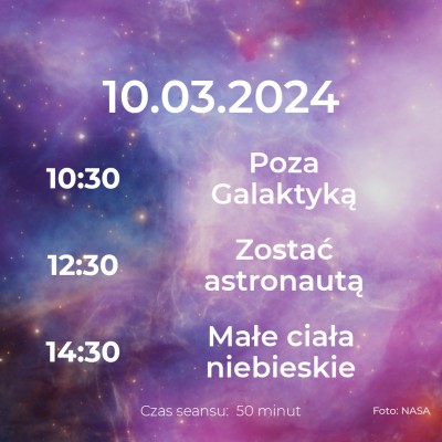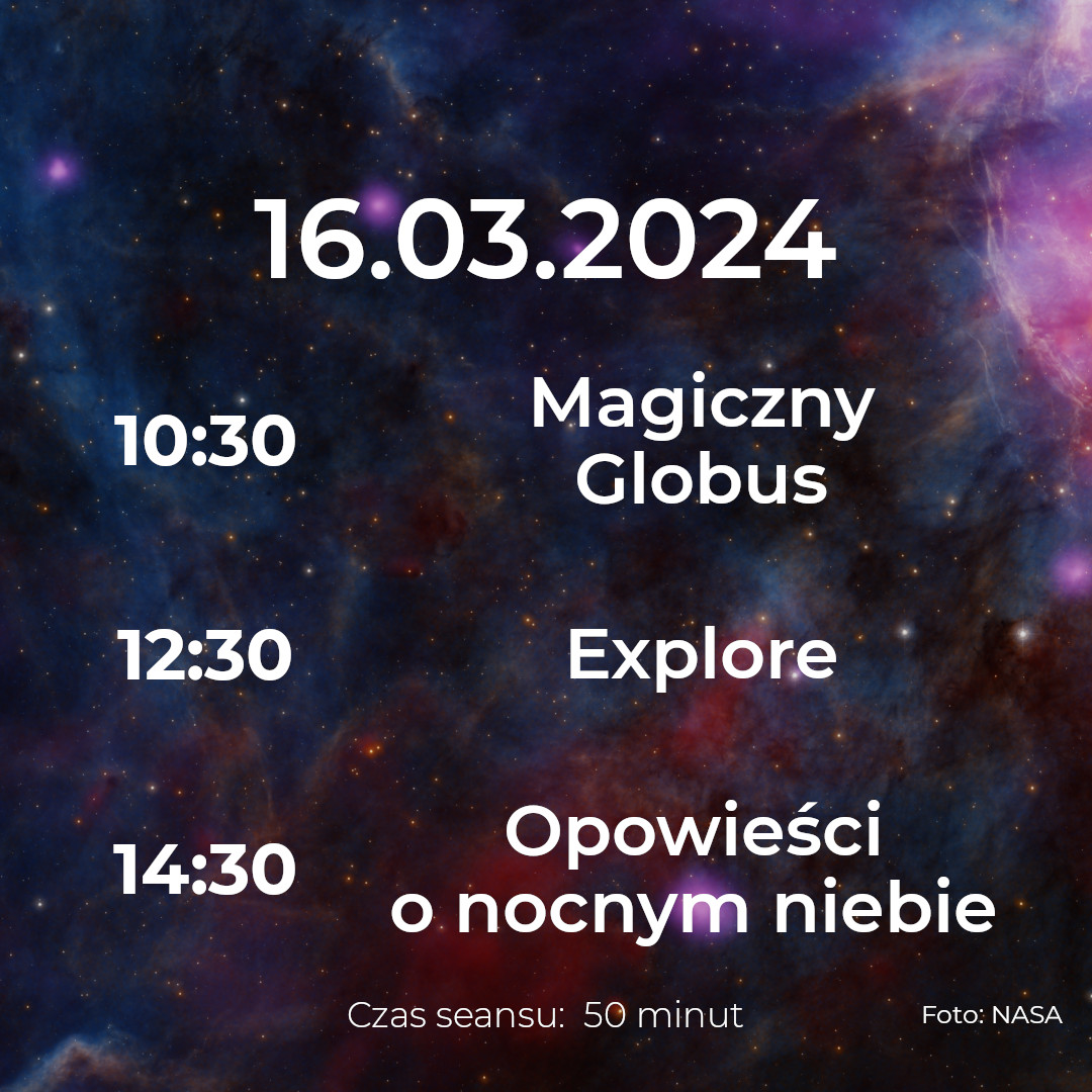 W marcu wracamy z kolejnymi Weekendami w Planetarium! Najbliższe seanse już w tę sobotę i niedzielę. Odkrywaj historię podboju kosmosu, dowiedz się, co znajduje się poza granicami naszej galaktyki i przeżyj niesamowite przygody jako astronauta.