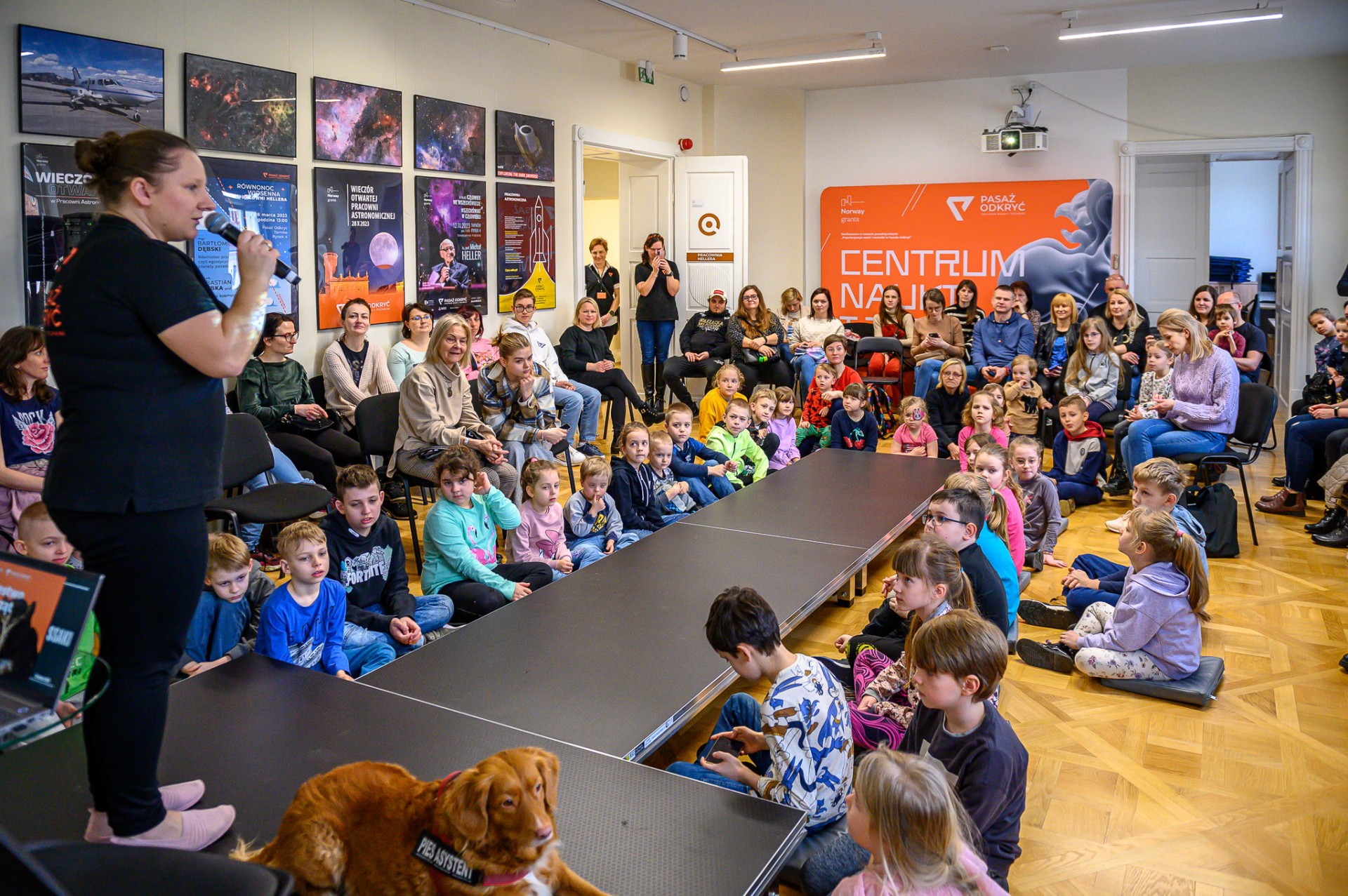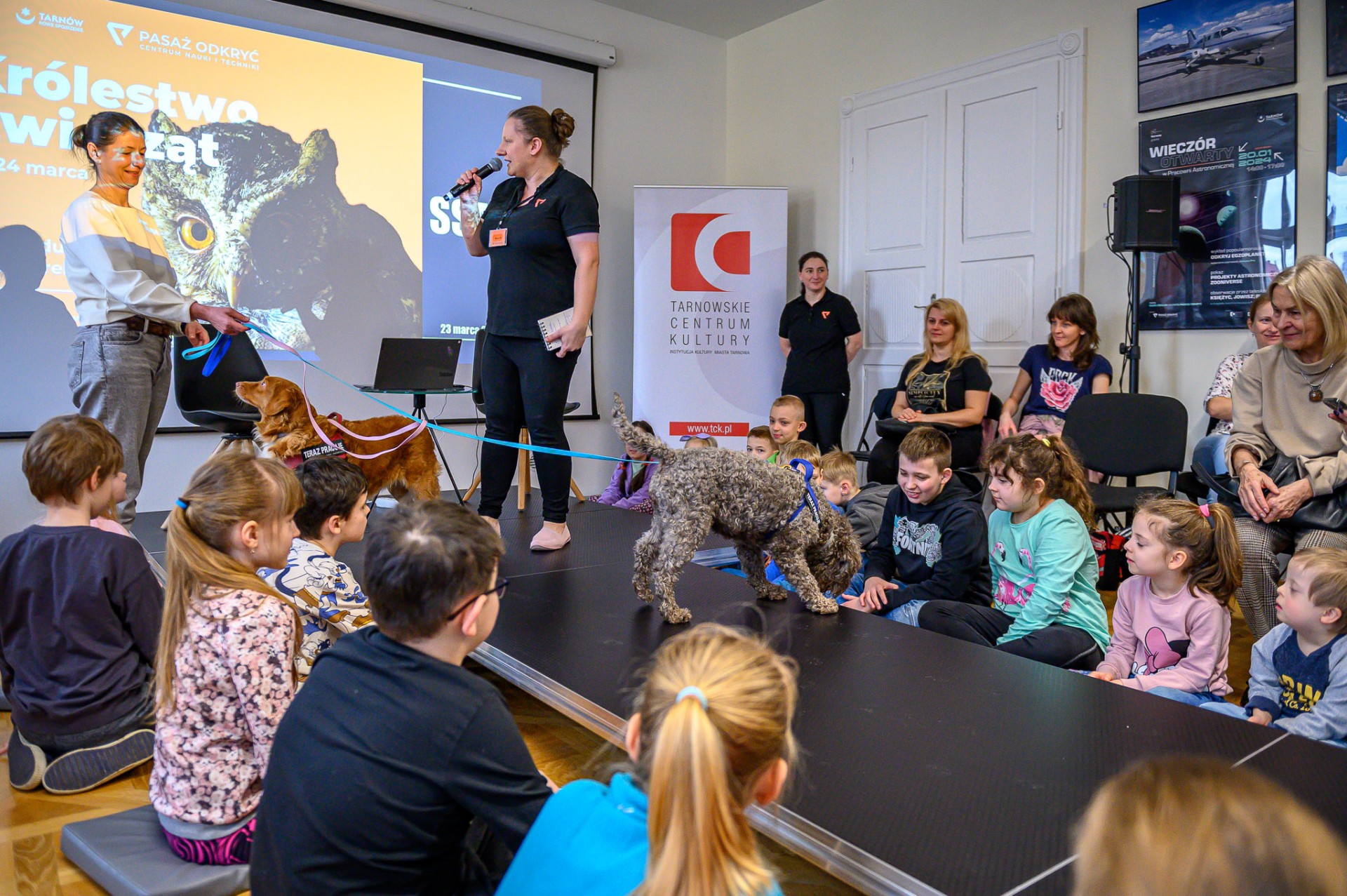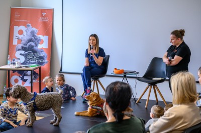 Hodowczyni i dogoterapeutka Joanna Palonek przedstawiła swoich wspaniałych podopiecznych ras Toller-Retriver oraz Lagotto romagnolo i omówiła zagadnienia dotyczące pracy z psem. Goście dowiedzieli się między innymi, jak stymulować potencjał intelektualny psa i do czego w jego edukacji mogą posłużyć... krzyżówki!