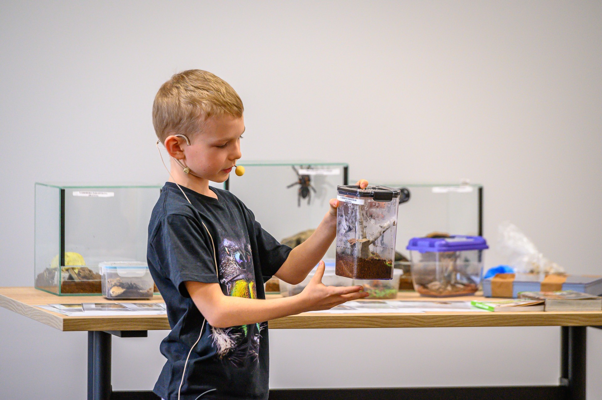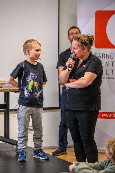 Na koniec, Maksymilian Biduś, inspirujący młody pasjonat zaprezentował nam swoje pająki i odpowiedział na liczne pytania naszych gości. Opowiadał nam o tym, jak odkrył w sobie tę niesamowitą pasję i pokazał, w jaki sposób zajmuje się swoimi fascynującymi podopiecznymi.