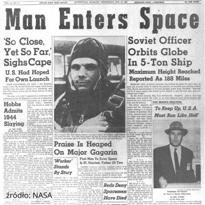 Z tą datą związane są dwa ważne wydarzenia astronautyczne. 12 kwietnia 1961 roku Jurij Gagarin został pierwszym człowiekiem w przestrzeni kosmicznej. Na pokładzie statku Wostok 1 wykonał częściowy oblot Ziemi, a jego podróż trwała 108 minut. Gagarin wrócił na Ziemię katapultując się na wysokości 7 kilometrów. W trakcie swojej podróży śpiewał „Ojczyzna słyszy, Ojczyzna wie”, ale gdy zobaczył Ziemię z kosmosu, powiedział „Ach, jak pięknie”.
