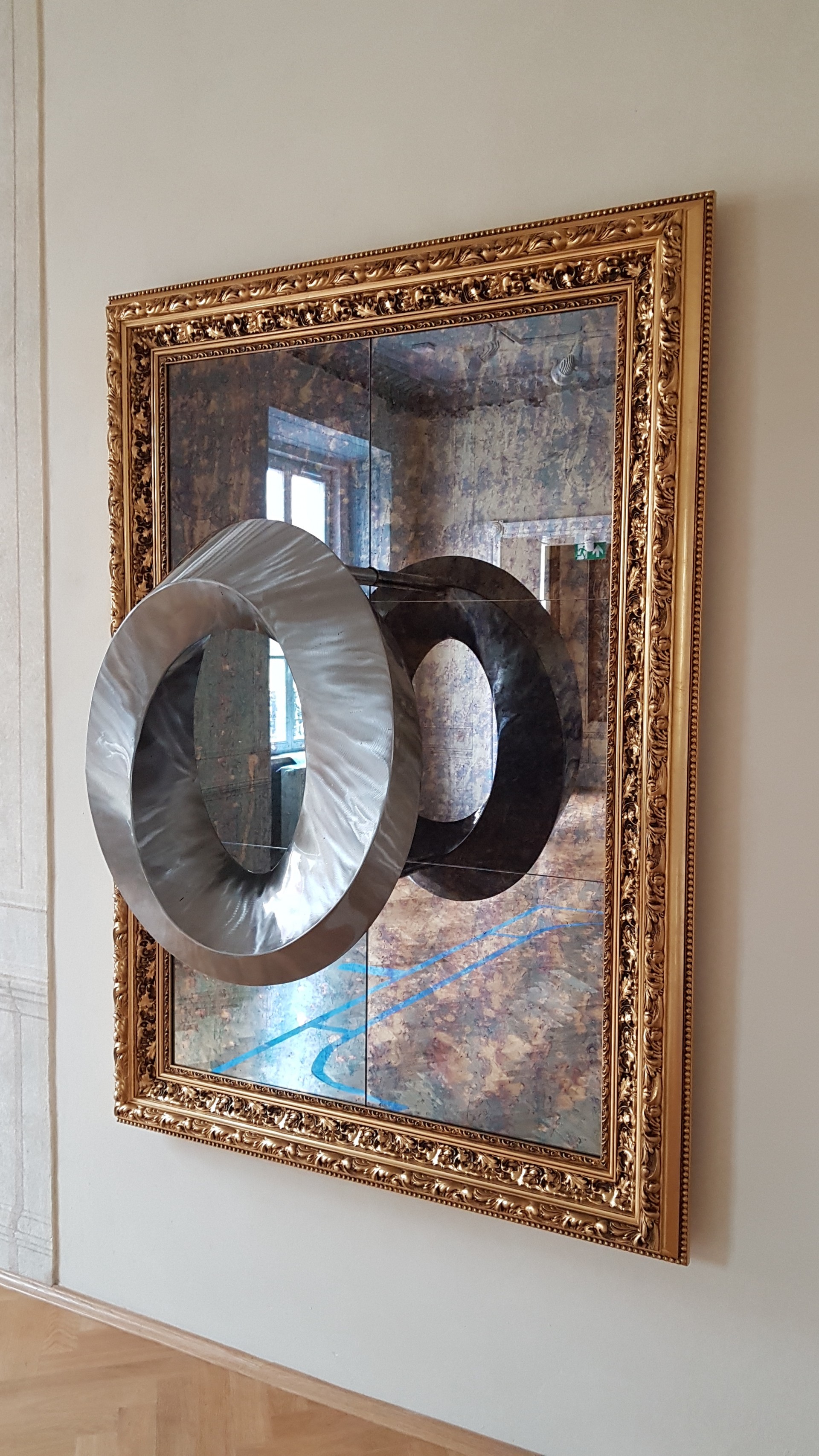 Na zdjęciu obok przedstawiamy eksponat: Wstęga Mobiusa. Jak się okazuje obiekt spełnia nie tylko cele edukacyjne ale jest również pokazem mistrzowskim umiejętności spawaczy. Wyeksponowany na te iryzowanego szkła, oprawiony w bogato zdobione pozłacane ramy przypomina dzieło sztuki współczesnej.