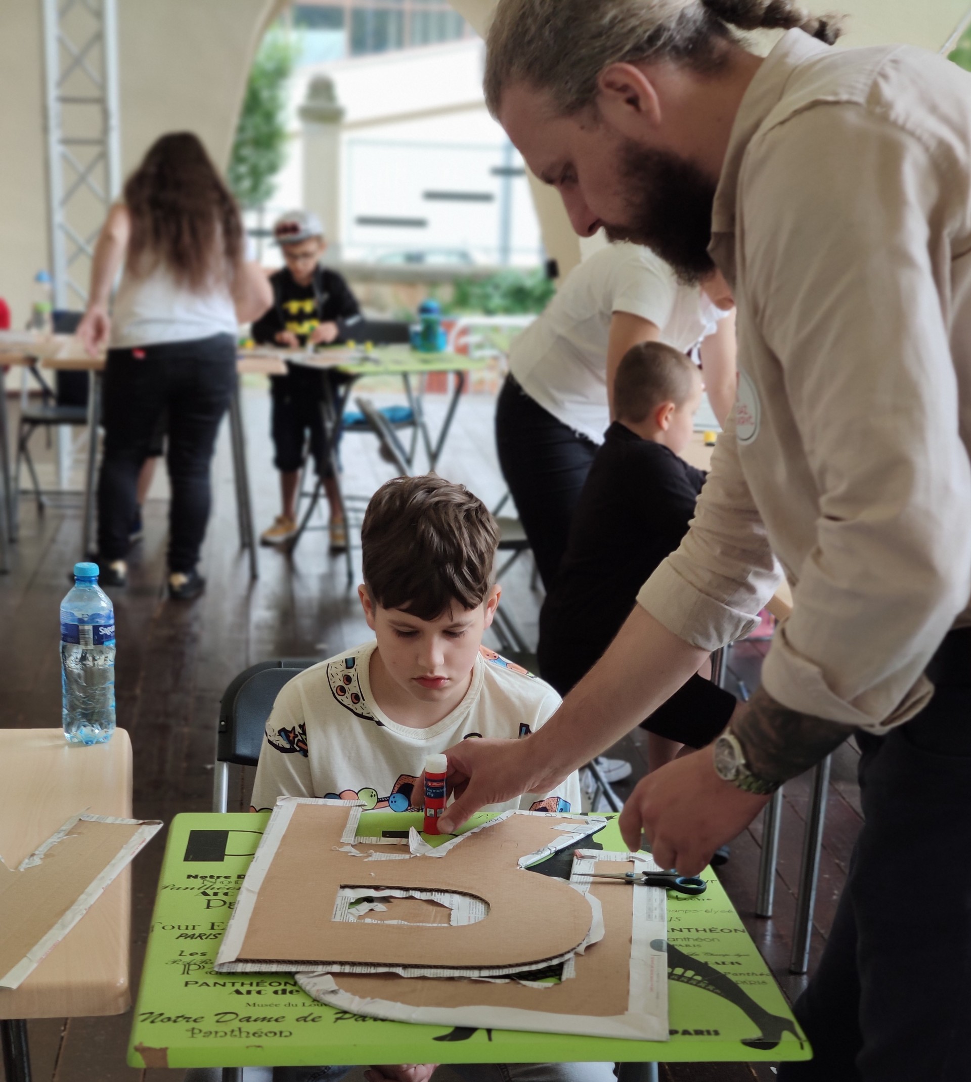 Pierwszego dnia dzieciaki wykonały gwiazdozbiory z patyków i kamieni, a następnie gotowe prace ułożyły na trawie, tworząc mapę nieba. Drugiego dnia chwycili za wiertarki i młotki, aby wykonać podstawki pod kubki. Przy pomocy kolorowych pisaków, dzieci pięknie ozdobiły swoje prace i na końcu zabezpieczyły powierzchnię bezbarwnym lakierem. W środę wspólnie z warsztatowiczami wykonaliśmy litery 3D z kartonu i papierowych kubków. Zajęcia miały za zadanie przedstawienie koncepcji upcyklingu, ograniczenia ilości wytwarzanych śmieci i ochrony środowiska naturalnego. Czwartego dnia odbyły się zajęcia hi-tech. Dzieci wykonały samochody solarne. Na samym końcu wszyscy wzieli udział w wyścigu.Samochodziki ruszyły z lini startu, dzięki promieniom słonecznym, które padały na ogniwo fotowoltaiczne. W drugim bloku dzieci wykonały ekologiczne szampony w kostce. Ostatniego dnia uczestnicy warsztatów poznali pojęcie fotosyntezy oraz przeprowadzili doświadczenie wskazujące wpływ wybranych czynników na intensywność procesu fotosyntezy.
