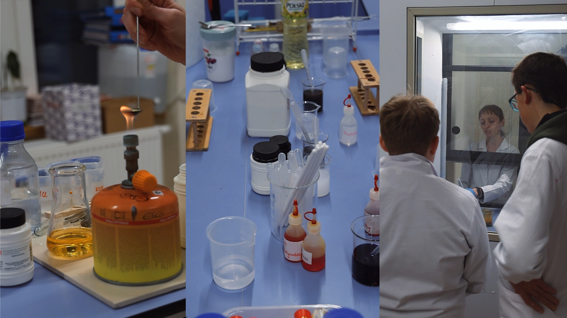 Licealistów zainteresowanych chemią z całą pewnością urzekła zbudowana na zajęciach cytrynowa bateria (bo przecież prąd elektryczny możemy wytworzyć sobie sami). Nie mniejszym zainteresowaniem cieszyły się poznawane w trakcie warsztatów metody oznaczania substancji w roztworach. Sprawdziliśmy, ile witaminy C jest zawarte w popularnych tabletkach, oznaczyliśmy też zawartość wapnia i magnezu w wodzie mineralnej i mleku. Mając możliwość obserwowania piękna chemii podczas przebiegu reakcji oscylacyjnych (reakcja Briggsa-Rauschera czy Biełousowa-Żabotyńskiego), uczniowie nie tylko zadawali wiele pytań, ale również otwierali się na nowe możliwości.