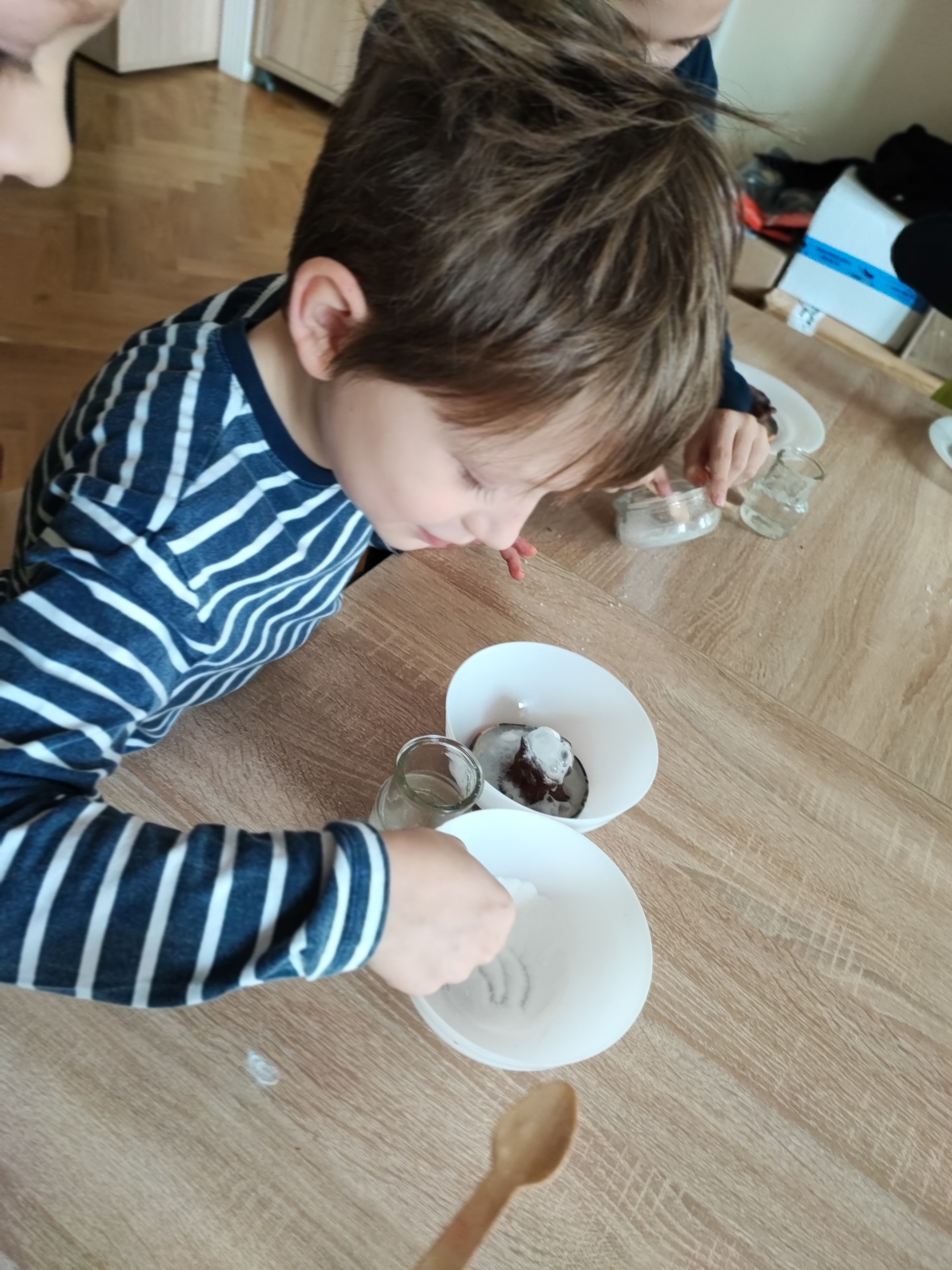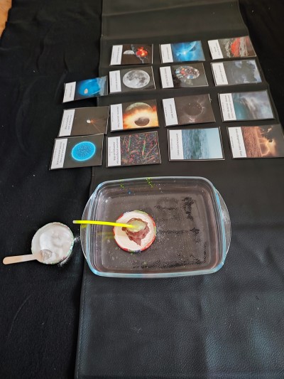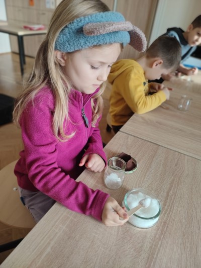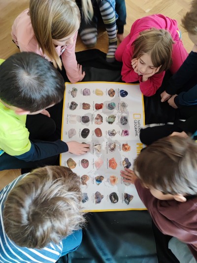 Z naszymi Małymi Naukowcami tym razem cofnęliśmy się w czasie, aby “zobaczyć” jak formowała się planeta Ziemia. Odkryliśmy pierwsze kontynenty, które tworzyły się dzięki intensywnie wybuchającym wulkanom. Wybraliśmy się także do wnętrza Ziemi i przyjrzeliśmy minerałom, które powstały w stygnących skałach magmowych. Dzieci wykonały swój własny wybuchający wulkan, oraz hodowlę kryształów w “geodzie” ze skorupki jajka. Na następnych zajęciach poznamy pierwsze formy życia, jakie utworzyły się na naszej planecie. Odpowiemy sobie na pytanie- jak wyglądały pierwsze organizmy zamieszkujące ciepłe wody w oceanach, rośliny, oraz bardziej złożone formy życia.