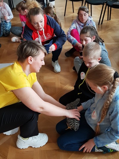 Dziś do Pasażu Odkryć zawitała pani Monika Kwaśniewicz wraz ze swoją pierzastą menażerią i przeprowadziła ptasie warsztaty pod nazwą "Spotkanie z jajem".