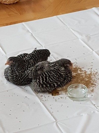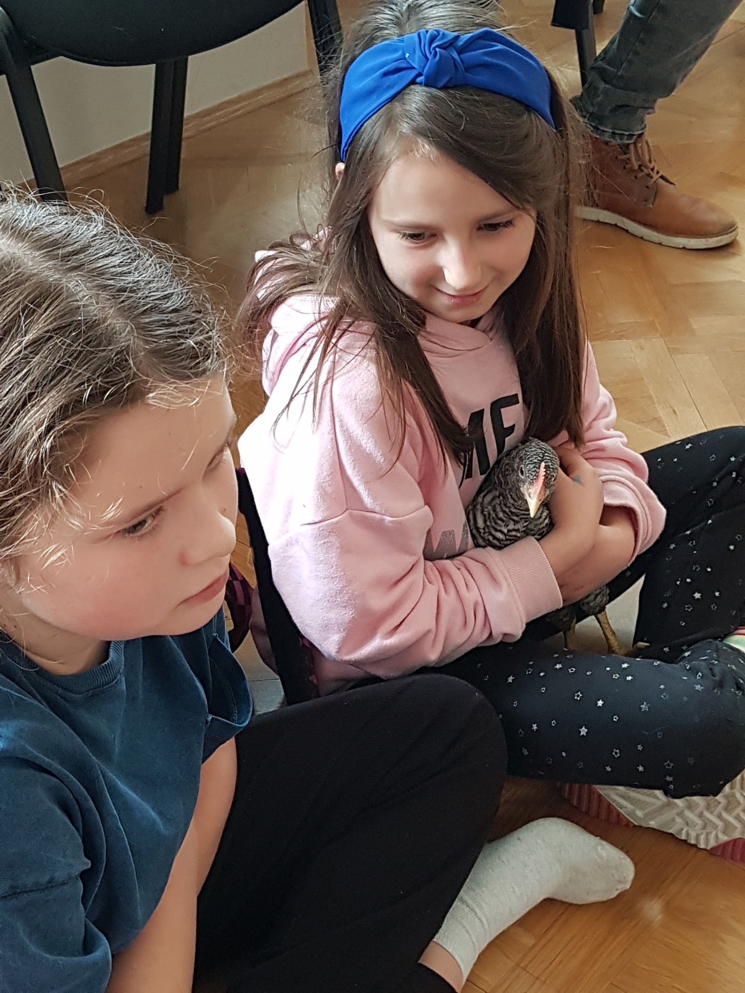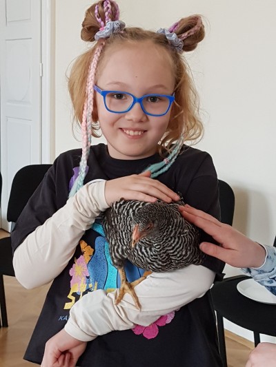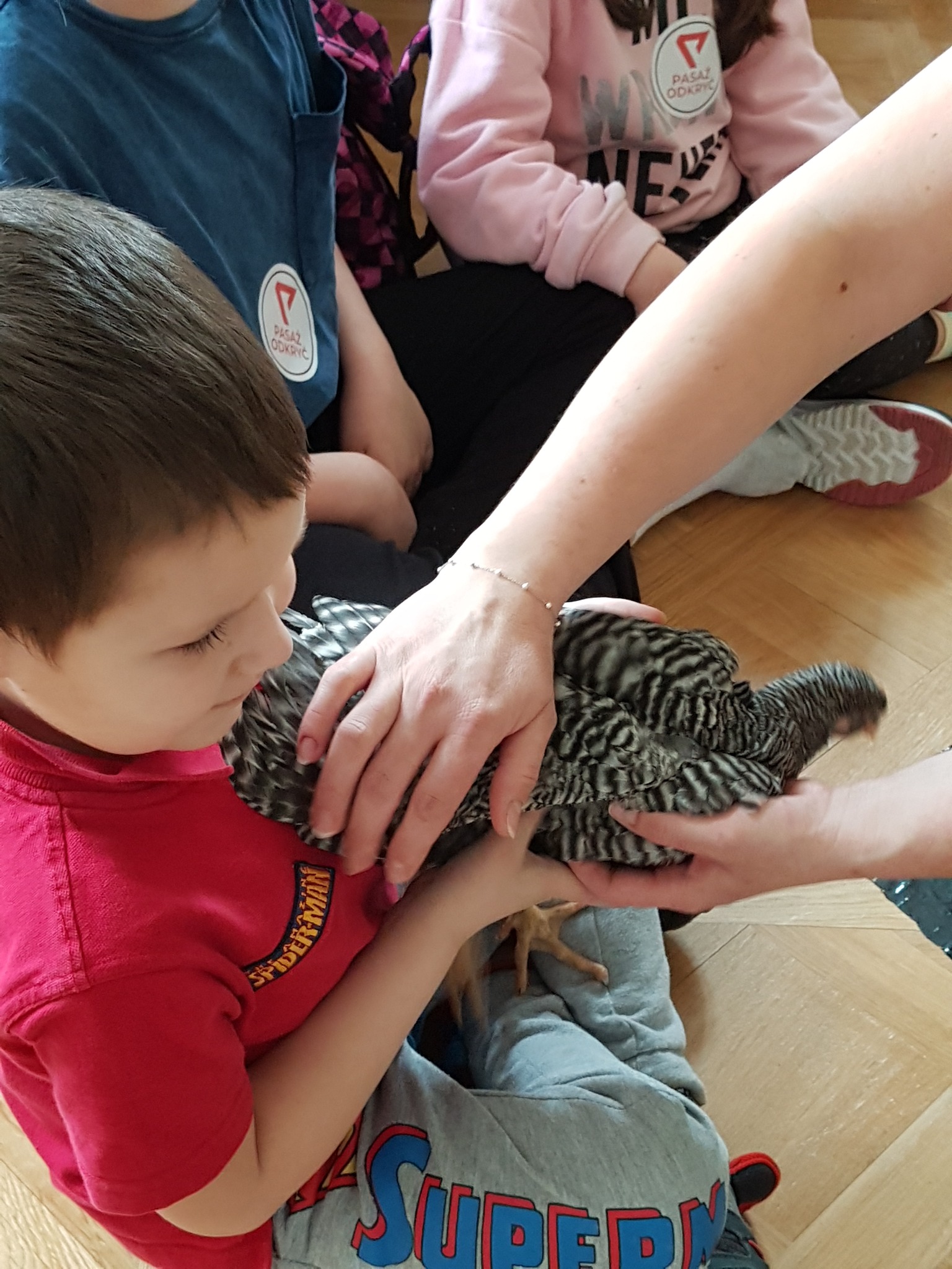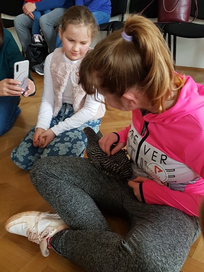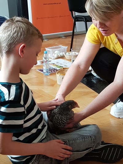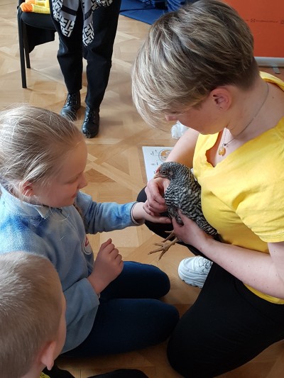 Na koniec sprawdzaliśmy czy pióra są szorstkie w dotyku poprzez głaskanie żywych kur.