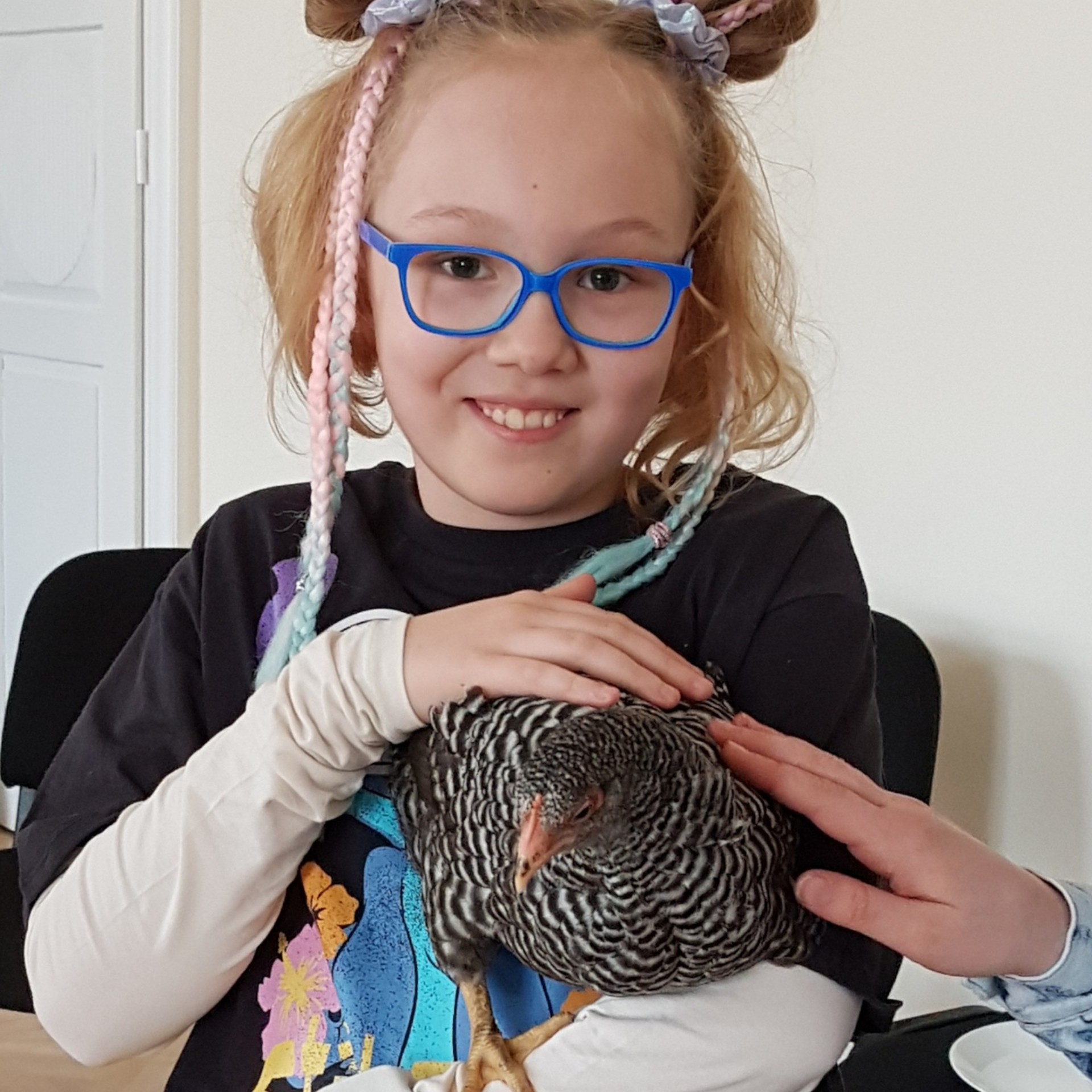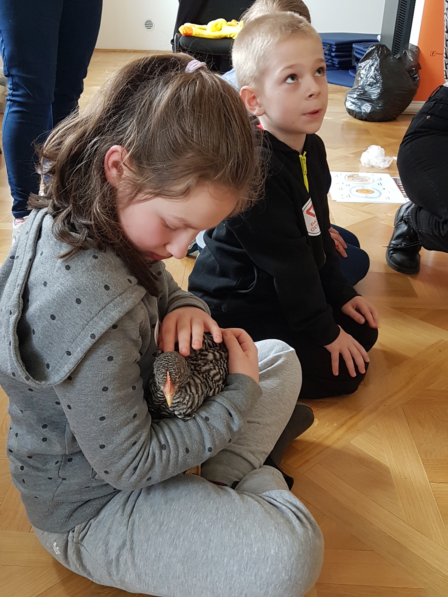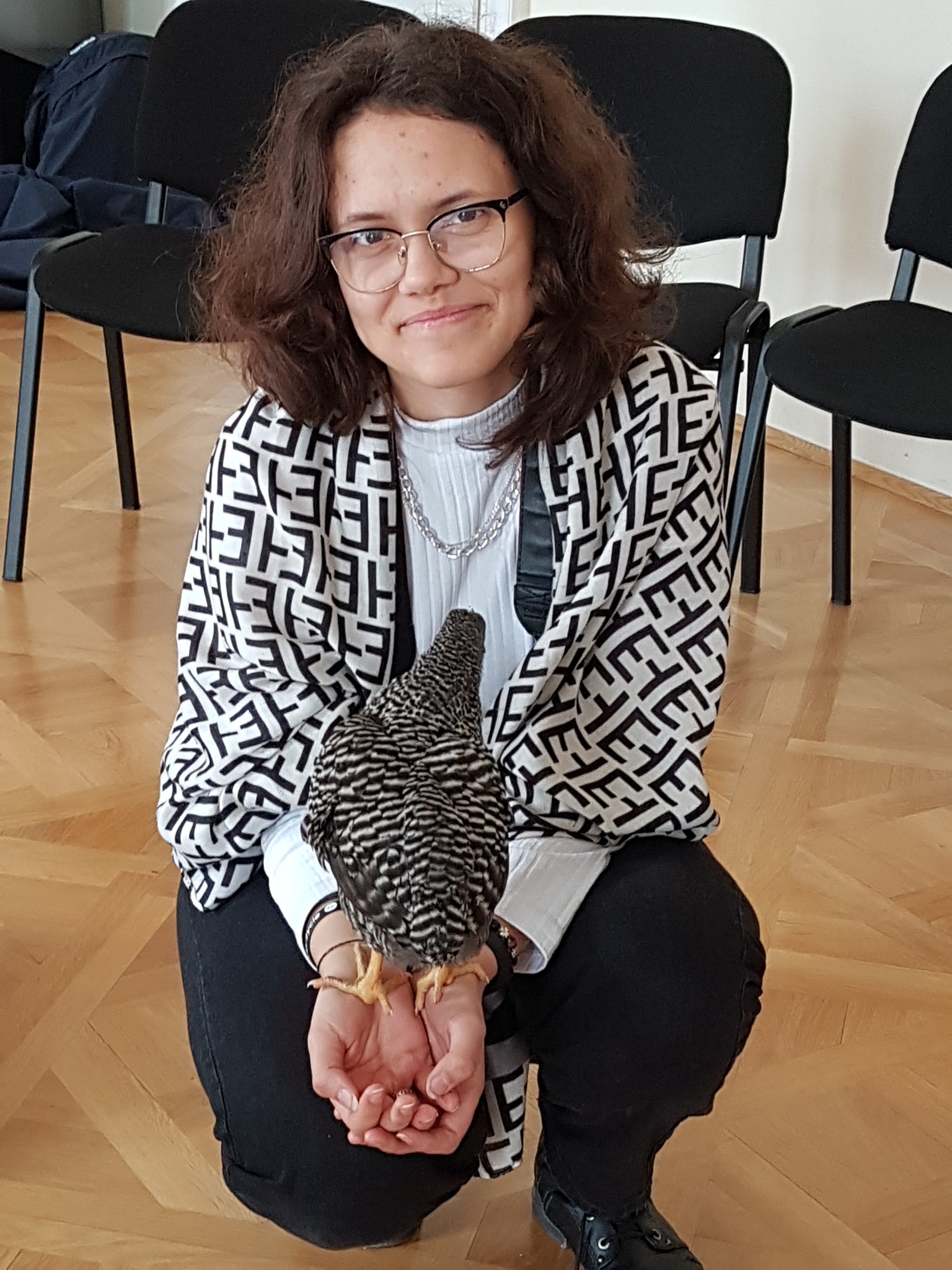 Na koniec sprawdzaliśmy czy pióra są szorstkie w dotyku poprzez głaskanie żywych kur.